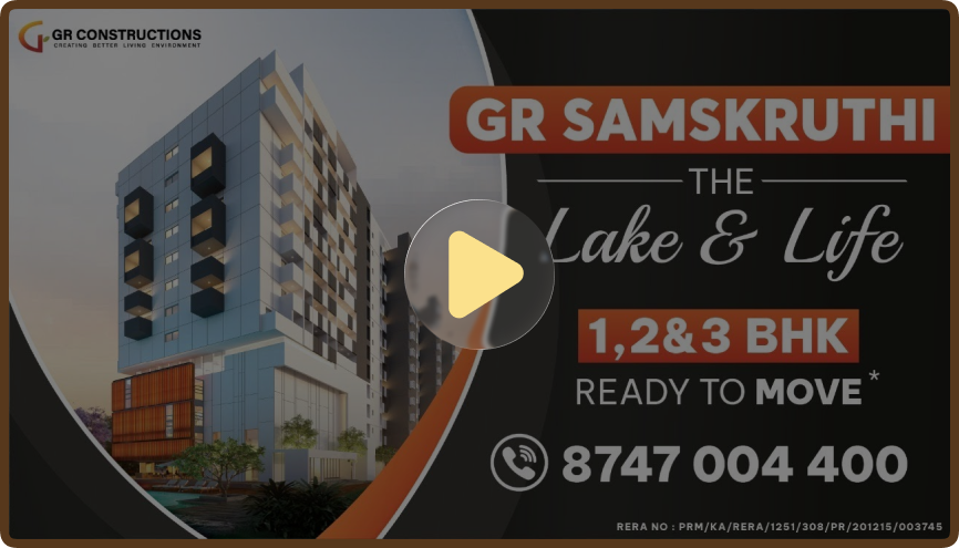 At GR Samskruthi, life isn’t just about a home. It is about laughter at breakfast, long evenings with loved ones, and waking up to a calming lake view every morning. Discover thoughtfully crafted 1, 2 and 3 BHK residences on par with International standards that inspire joy, stability, and a future filled with memories.